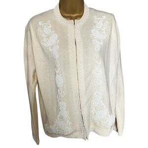 Vintage Royal Beaded Wool Angora Cardigan Cream White Made in Hong Kong 46
