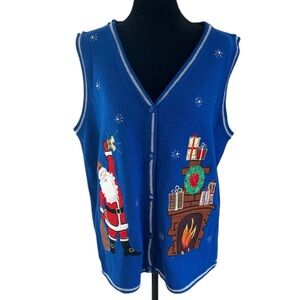 Vintage Royal Blue Christmas Santa and Gifts Festivities Embroidered Vest 0088