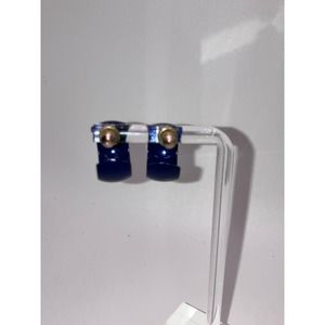Vintage Royal Blue Enamel Hoop 5/8 Inch Earrings!