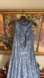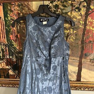This vintage floral embossed long flowy dress is a dream and very rare. 90's Era in perfect condition this dress has a sleeveless design and high neck line, a gorgeous blue color and a satin sheen made to look like silk. Size 3/4 on tag fits like a true size small