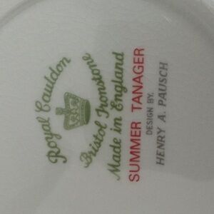 Beautiful Vintage Royal Caulden Bristol Ironstone plate. Made in England. "Summer Tanager" designed by Henry Pausch.