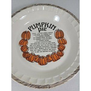 Royal China 10" Pumpkin Pie Plate With Recipe, Made In USA