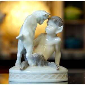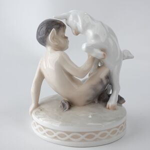 Vintage Royal Copenhagen Faun Pan Satyr Playing with Goat Sculpture #498