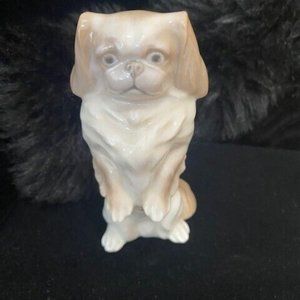 Vintage Royal Copenhagen of Denmark Pekingese Dog Standing in Tan