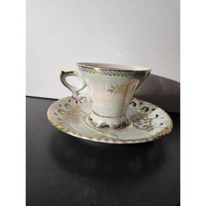 Measurements: Saucer is 6 1/4" diameter, Cup 3 5/8" diameter, 3" tall Perfect Vintage Condition no cracks or chips.