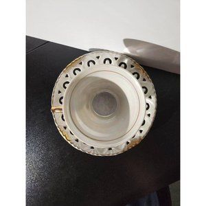 Color is white lusterware with beautiful opalescent look with gold trim on both pieces.
