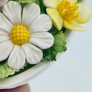 Beautiful piece with the delicate daisy flowers all over filling in a white "basket". Preowned condition- may be somewhat dusty from display. These flower petals can be fragile, but mostly intact. Found one small broken leaf and the rest looks good.