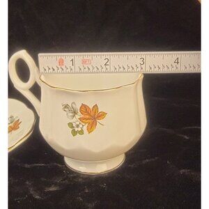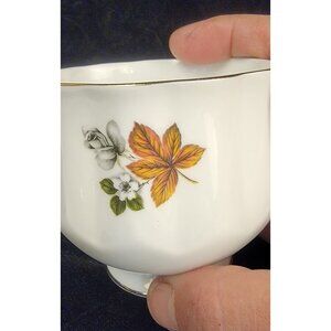This beautiful bone China teacup set was crafted in a Victorian style by Royal Dover Company in England during the 1950s, featuring a beautiful fall pattern of Autumn leaves and flowers. This would make a wonderful addition to any China collection or just to drink your coffee or hot tea with a touch of class. It would also make a wonderful gift for that special someone. Please see the provided photos for further details. (Artificial plants not included.)