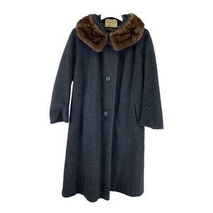 Vintage Royal Emblem By Namdlef Wool Coat Mohair Collar Canada Long Button Large