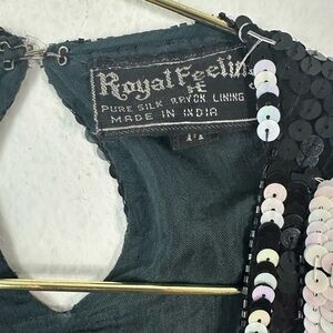 Vintage Royal Feelings Silk Black/White Sequin Blouse Size M
