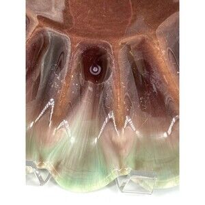 Vintage Royal Haeger Pottery Green & Brown Console Shallow Scalloped Bowl 13"