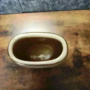 Vintage Royal Haeger Pottery Tan/Gold Rim Oval Vase 5 in