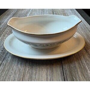 Vintage Royal Jackson Arlington Gravy Boat Attached Underplate Dogwoods Floral