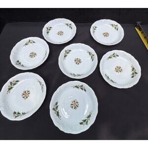 Vintage Royal Kent Christmas Holiday Holly Poland 6 1/5” Dessert Bowls Set Of 7