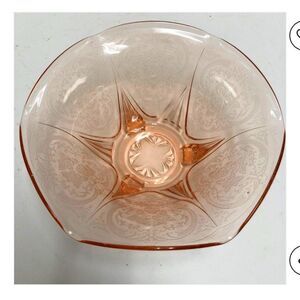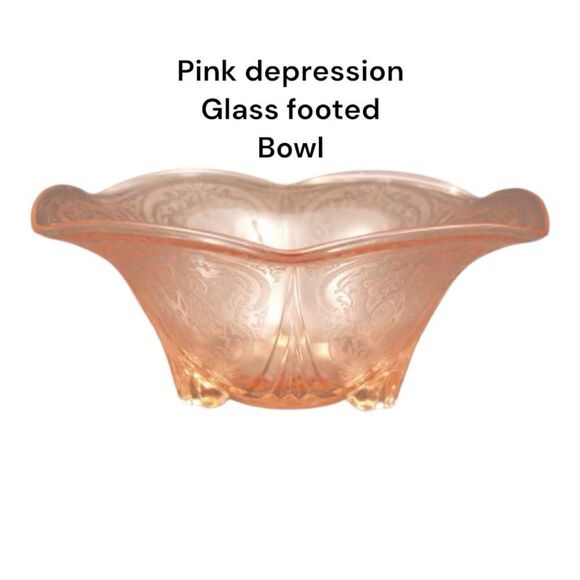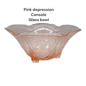 Vintage pink depression glass Royal lace design Elegant pink glass footed bowl with intricate design. Perfect for decor or serving. Vintage Royal Lace pink Depression glass ruffled footed console