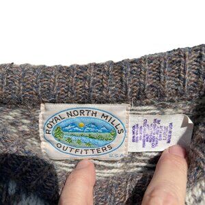Stay warm and stylish with this vintage Royal North Mills sweater featuring a classic Nordic pattern. Ideal for casual wear or outdoor activities.