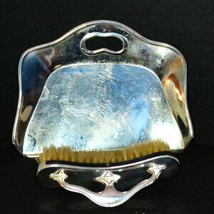 Crafted circa 1930s–40s, this set was designed for sweeping crumbs discreetly between courses, a staple of formal table etiquette. Does have some age related wear on both the dustpan and brush but will not distract from use or display. Both have some slight tarnish, and scratches on dustpan.