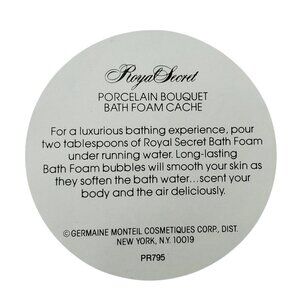 The bath foam cache inside remains factory sealed and unused, retaining the unmistakable fragrance of Royal Secret—a classic Chypre Floral perfume first introduced in 1935. According to Fragrantica, this refined scent opens with Galbanum, Lavender, Lemon, and Bergamot, blossoms into Rose, Geranium, Orange Blossom, Violet, and Lily-of-the-Valley, and settles into a rich base of Sandalwood, Patchouli, Vetiver, and Vanilla.