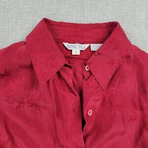 Royal Silk Womens Blouse Size 8 Red Button-Down Embroidered Long Sleeve Casual