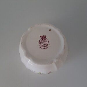 This charming sugar bowl, crafted by Royal Stafford, features a delicate floral pattern on fine bone china. It's an elegant addition to any tea set.