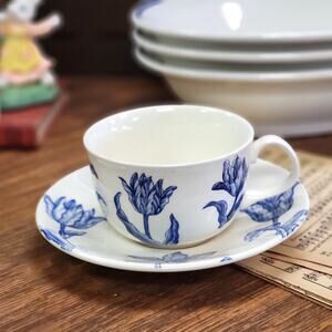 This pattern: “Tulipa” features cobalt blue tulips on a creamy white background. This vintage discontinued pattern is a beautiful find! "Royal Stafford" “Made in England” est 1845 marked on the bottom of the saucer. Wonderful decor piece for cottage aesthetics or add to your teacup collection. The set is microwave and dishwasher safe but would recommend hand-wash only.
