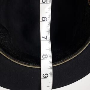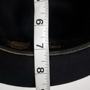 The Vintage Royal Stetson Hat is a classic piece from the 50s or 60s, featuring a rounded top fedora style. Made with 100% wool in a sophisticated black color, this hat exudes retro charm and timeless elegance. The hat is designed in size L, perfect for a larger head size, and is a unique accessory that will elevate any outfit with its vintage appeal.