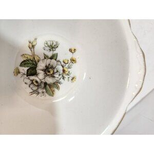 The Vintage Royal Tudor 22KT Gold Trim Linda Pattern Bowls Set of 5 is a charming and elegant set of round porcelain bowls with a beautiful floral pattern. Made in the mid-20th century, these bowls feature a Tudor style design, perfect for all occasions. The multicolor bowls are hand wash only and are a part of the Linda product line by Royal Tudor, adding a touch of vintage charm to any dining table or kitchen decor. Pre-owned by collector. In good condition with no chips or cracks. Gold rim has faded. Please see pictures for details.