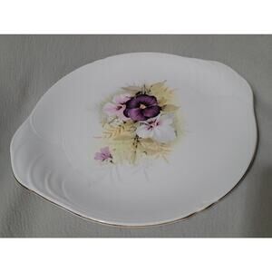 Vintage Royal Vale Serving Plate Purple Pansy Flower Lilac Handle Made England