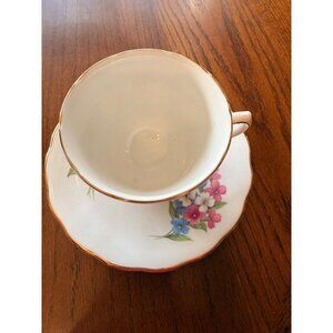 Vintage Royal Vale Teacup and Saucer White with Floral Bone China