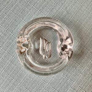 This is a vintage Royal Viking Line ashtray crafted from heavy, clear glass. It's a unique piece of maritime history, perfect for collectors or anyone who appreciates vintage travel memorabilia. This ashtray would make a wonderful addition to any collection.