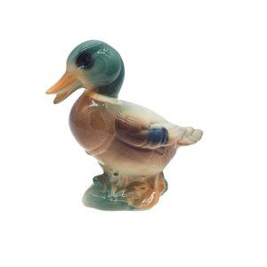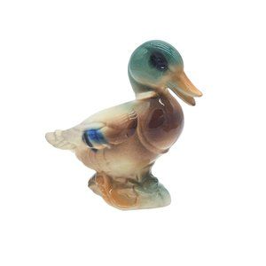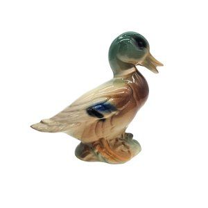 Embrace nostalgic charm with this vintage Royal Windsor Copley Mallard Duck collectible figurine, a delightful addition to any décor. Crafted in the 1950s, this ceramic duck exudes rich colors, capturing the essence of its mallard inspiration. Standing approximately 6 inches tall and 6 inches wide, it makes a captivating display piece on shelves or mantels. Despite its age, this figurine is in excellent condition, showcasing its timeless appeal and enduring craftsmanship.