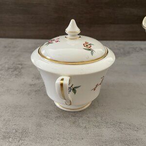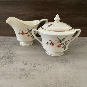 Vintage Royal Worcester Blossom Time Sugar Bowl with Lid and Matching Creamer 3-Piece Set Bone China Made in England Mint Condition