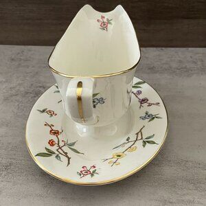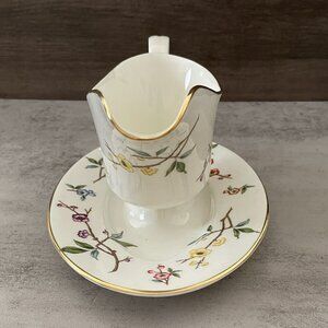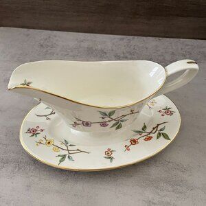 Vintage Royal Worcester Blossom Time Gravy Boat with Attached Under Plate MINT