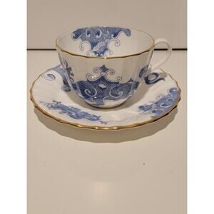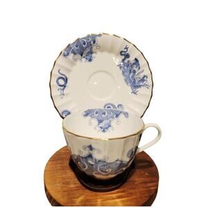 Vintage Royal Worcester Blue Dragon Tea Cup & Saucer Gold Trim with Stand