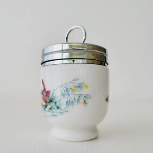 This Royal Worcester egg coddler features a charming bird design on multicolor porcelain. Made in England, it's perfect for breakfast dishes or as unique kitchen decor. Makes a great housewarming gift.