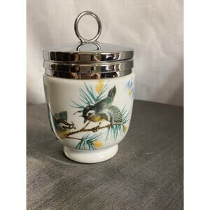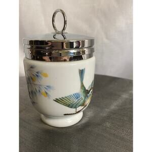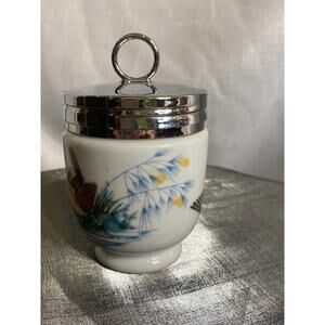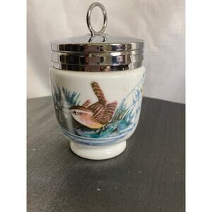 Vintage Royal Worcester Porcelain Egg Coddler with chrome top Birds Wren VGUC