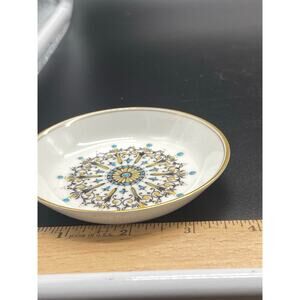 Vintage Royal Worcester Porcelain Trinket Dish w/ Blue & Red Enamel Design