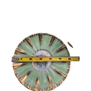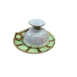 Vintage Royal Sealy Teacup & Saucer Mint Green Gold Iridescent Roses Japan Rare