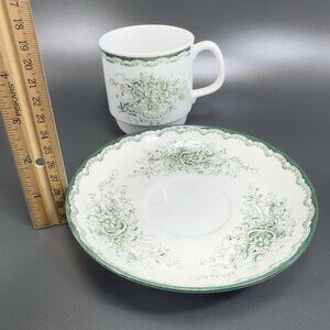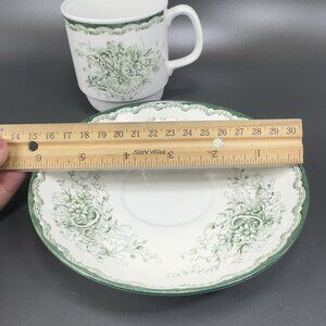 Vintage Rörstrand Sweden Grön Anna Teacup And Saucer Set Green Floral Porcelain
