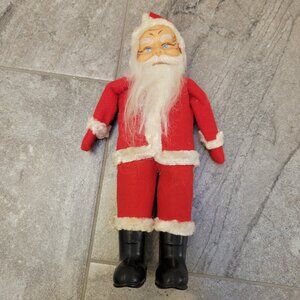Vintage Rubber Face Santa Made In Japan Black Boots 11” Felt