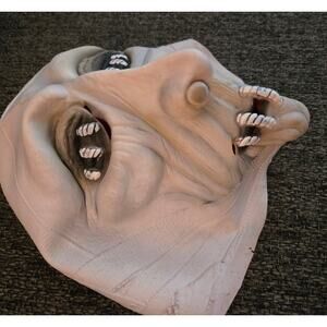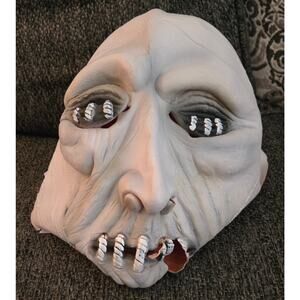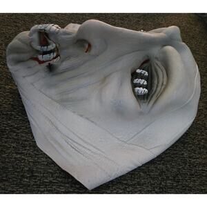 Get ready to spook and scare with this vintage rubber latex Halloween mask! This mask features stitched eyes and mouth, adding to its creepy aesthetic. It has a tear on the left side of the mouth, which might even enhance the scary factor! Perfect for Halloween parties, haunted houses, or collectors of vintage horror memorabilia.