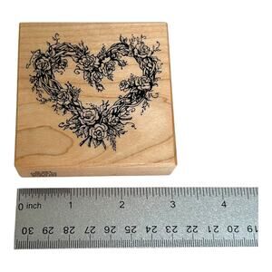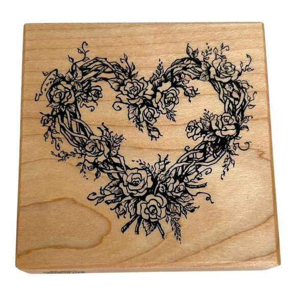 Vintage Rubber Stamp PSX G-553 Heart Shaped Wreath of Vines and Roses 1993