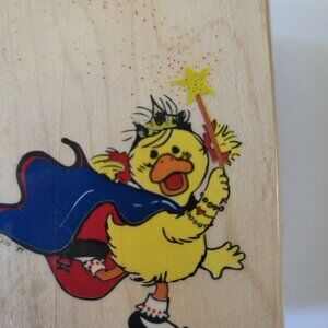 For sale is ONE vintage Rubber Stampede Suzy's Zoo Rubber Stamp-The Duck Fairy. The rubber stamp measures 3 1/2 inches by 2 3/4 inches and shows a duck dressed in a tierra and cape and carry a wand. The rubber stamp is in good used condition. The stamp would be perfect for scrapbooking or junk journaling