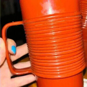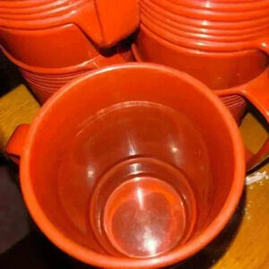 5 Vintage Rubbermaid Ribbed Brick Red Clay Color Tumbler Mugs Stacking 3829, RARE in this color and in this quantity, in great condition,