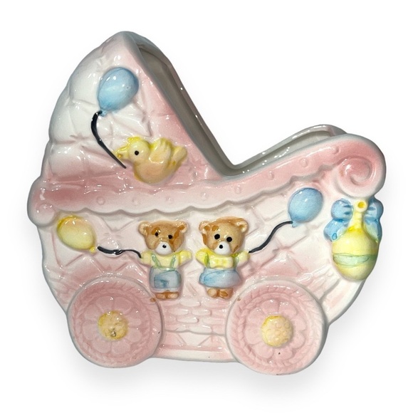 Vintage Rubens Originals 1990 Planter Japan Ceramic Buggy Teddy Pottery 6210A