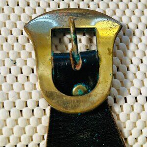 Vintage Ruber Van New York Black Belt With Brass Accents Size Small 24”. Preowned. Could use a little TLC.