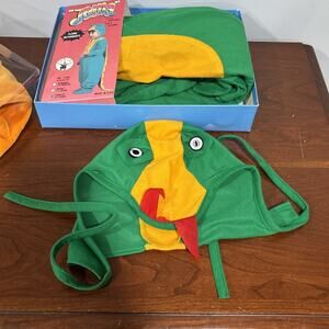 This Vintage Rubies JAMA Costume Dinosaur is a nostalgic and unique choice for your toddler's dress-up time. Made in the USA by the reputable brand Rubie's, this dinosaur costume is themed for the adventurous young ones. The original box adds to its charm, making it a special collectible for your child's costume collection. Perfect for imaginative play or a costume party, this vintage dinosaur costume is sure to stand out and bring joy to your toddler.