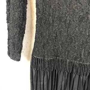 Vintage Rubina Dress Womens Small Black Accordion Pleats Lace 20s Retro Event