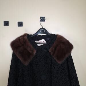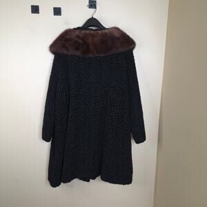 Vintage Rubin's Swirled Heavy Long Lined Coat with Fur Collar in Black Size XL