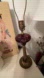 Vintage Ruby Red Ball Glass and Brass Table Lamp 26”